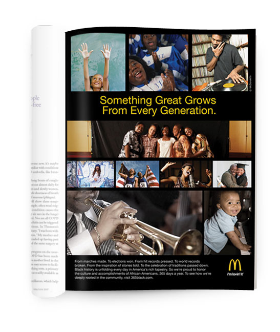 About: With the urban outreach effort called 365 Black, McDonald's shows that great achievements made by African-Americans happen every day. I made sure the tone and copy lead into the established tagline theme, "deeply rooted in the community."
