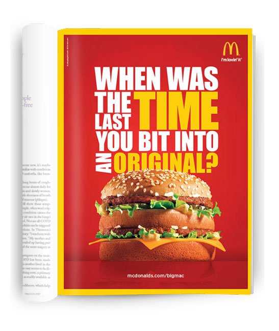 The Big Mac is one-of-a-kind. A classic that deserves some respect. So we reminded consumers of its status in a truly colorful fashion. This ad serves as a visual "shout out" to the one that started it all.